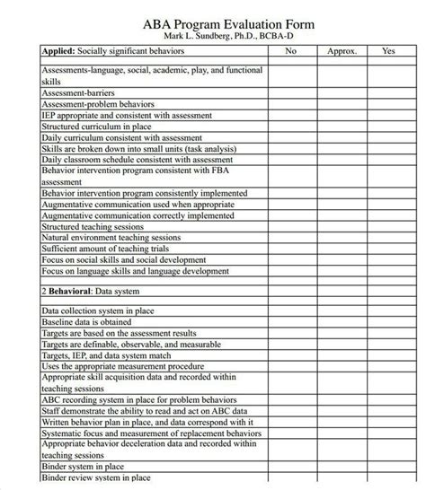 Aba Program Evaluation Form . Aba program evaluation form mark l. There are 2 main components of an initial assessment: